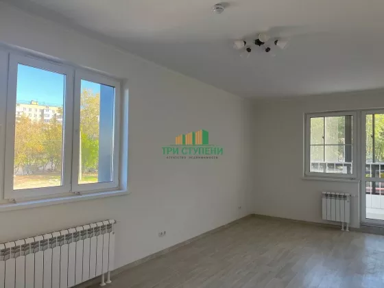 Удачная планировка: большая, светлая комната 23 кв.м. с выходом на лоджию, просторная кухня 10 кв.м. Качественная отделка в нейтральных тонах.