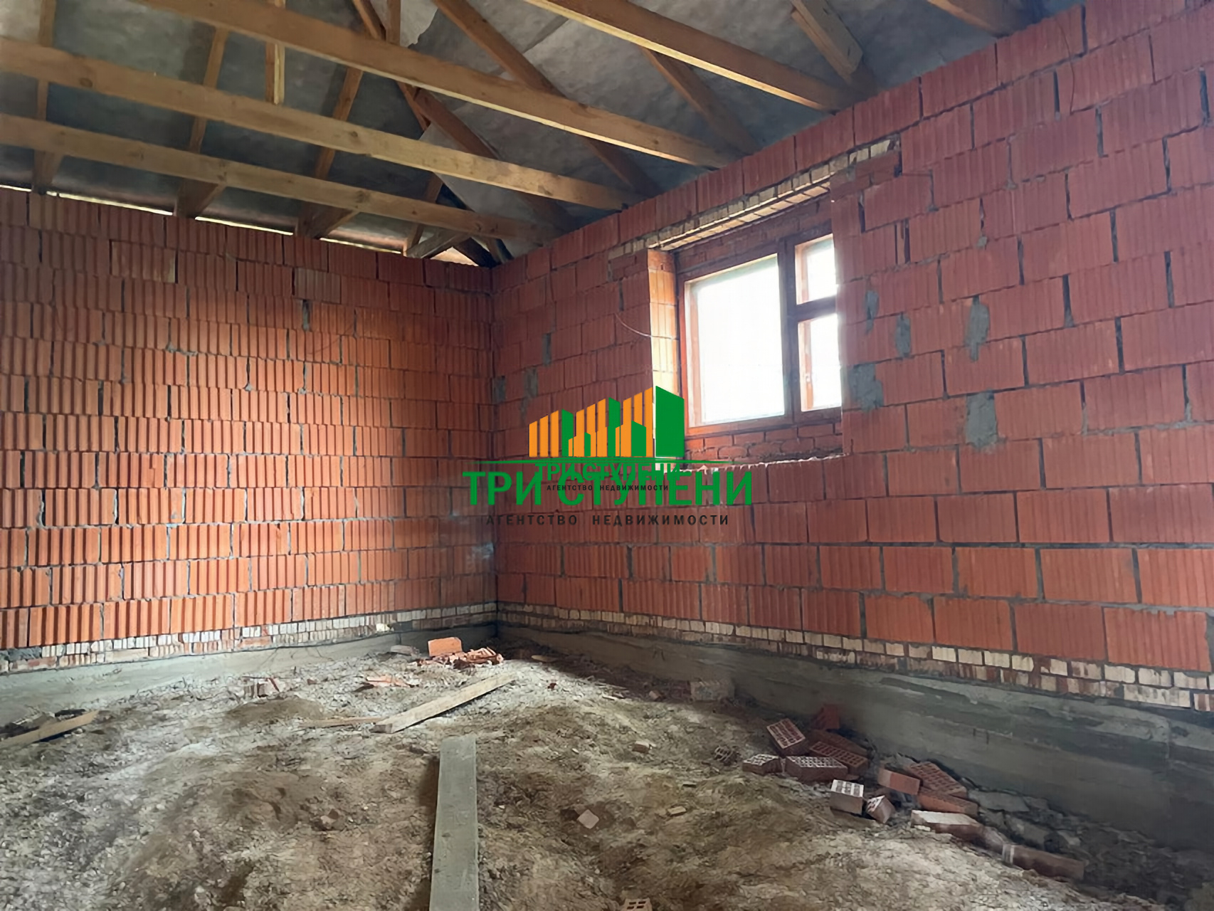 Коммуникации: заведено электричество мощностью 15 кВт, водоснабжение – скважина в поселке. Газоснабжение по информации собственника – заключен договор. Отопление не разведено, дом без санузла и без отделки, что дает возможность обустроить инженерные системы под себя. Возможна покупка в ипотеку.